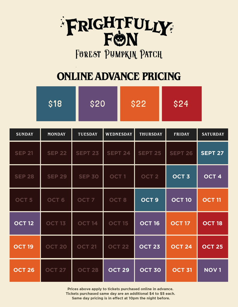 Our Haunted attractions are not included in Fall at the Farm and require separate tickets. Please see our Haunted webpage for more details.