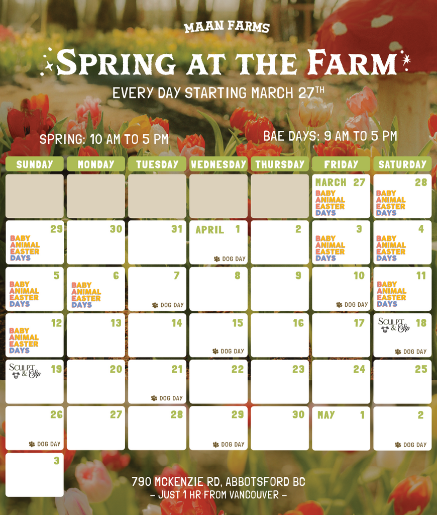 While we love your furry friends, for the safety of our animals, they will only be permitted on designated Dog Days. See calendar for dates.