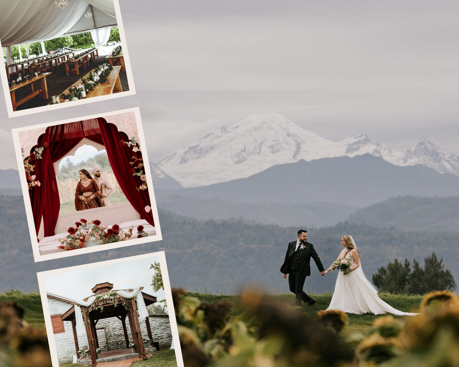 The Mt. Baker ceremony site located on a beautiful grassy field, complete with 2 ponds and Panoramic views of of the mountains in the background.